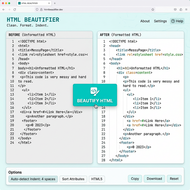 The HTML Beautifier Tool is an essential utility for anyone working with web code. It helps you instantly format your markup, making it easier to read and debug. Clean code is crucial for technical SEO and site health.