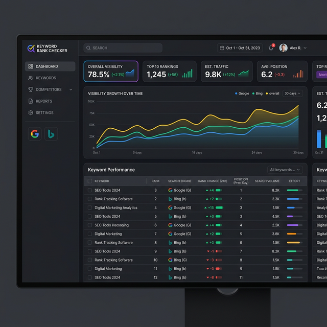 The Keyword Rank Checker is an essential analytics tool for SEO professionals and business owners. It allows you to monitor exactly where your specific URLs stand in the search engine result pages (SERPs) for targeted queries.